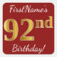Red, Faux Gold 92nd Birthday + Custom Name Sticker