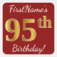 Red, Faux Gold 95th Birthday + Custom Name Sticker