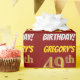 This wrapping paper design features a message like "GREGORY’S 49th BIRTHDAY!", with the "49th" having a faux/imitation gold-like colour appearance, and with the name and "BIRTHDAY" in a fun, bold font. The name is customisable, and the background is coloured red. Wrapping paper like this could perhaps be used when wrapping birthday gifts being given to somebody in celebration of their forty ninth birthday. [~Z0000204]