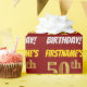 This wrapping paper design features a message like "FIRSTNAME’S 50th BIRTHDAY!", with the "50th" having a faux/imitation gold-like colour appearance, and with the name and "BIRTHDAY" in a fun, bold font. The name is customisable, and the background is coloured red. Wrapping paper like this could perhaps be used when wrapping birthday gifts being given to somebody in celebration of their fiftieth birthday. [~Z0000204]