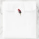 Artistically drawn, antique fountain pen embellished with dark red feather on white background.