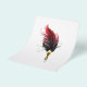 Artistically drawn, antique fountain pen embellished with dark red feather on white background.
