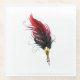 Artistically drawn, antique fountain pen embellished with dark red feather on white background.