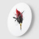 Artistically drawn, antique fountain pen embellished with dark red feather on white background.