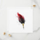 Artistically drawn, antique fountain pen embellished with dark red feather on white background.