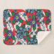 Native American inspired red floral and feather throw blanket. The flowers are designed after Athabaskan bead work.