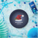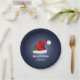 Red Festive Santa Hat On Blue With Custom Text Paper Plate