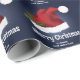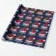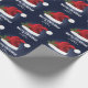 Red Festive Santa Hat On Blue With Custom Text Wrapping Paper