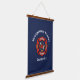 Stylish wall tapestry for firehouses, firefighters and their families, features red generic fire department logo on dark blue background. Customise with city or county department details or firefighter name in modern white font