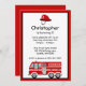 Fire truck birthday invitations. Invite your guests in style with this adorable red and black fire truck birthday invitation. Perfect for a firefighter themed party! Easily customise with your party information.
