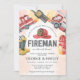 This Fireman Baby Shower Invitation is designed to match our watercolor Fire Truck themed collection! This theme is perfect for any gender, boy or girl, with soft tones of red, yellow, orange and grey. This design features watercolor fire engine trucks along with other firefighter graphics. The backside features matching graphics that perfectly compliment the frontside.