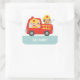 Red Fire Truck with Fire fighter Boy and Puppy Square Sticker