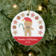 “First Christmas.” A cute gingerbread boy and a cookie circle, along with playful white script typography on a red band, help you usher in Christmas and New Year. On the back, personalise with a photo of the new baby. Feel the warmth and joy of the holiday season whenever you use this stylish and modern personalised photo keepsake ornament. Choice of a circle or square shape. Perfect for the newly proud parents, grandparents, as well as other relatives!