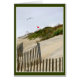 On the Outer Banks a red surf danger warning flag stands out against the stormy beach dunes.