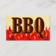 A custom business card with art of red flames and brown and red western letters for your name and business on a faux parchment background and BBQ on the back. Click Customise It to change fonts, sizing, card sizes, background colours front and back, even save your design for later.