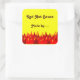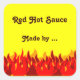 A custom canning label for hot sauces, relishes, salsa or other flaming hot recipes with graphic art of red and orange flames at the bottom of the design. Another original by MomsRetro.