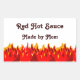 A custom canning label for hot sauces, relishes, salsa or other flaming hot recipes with graphic art of red and orange flames at the bottom of the design.