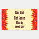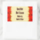 A custom canning or jar stickers with western letters, for hot sauces, relishes, salsa or other hot recipes with graphic red and orange flames around the design on a faux parchment background..