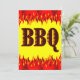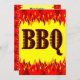 A custom birthday party or BBQ cookout invitation with art of red and orange flames reading BBQ on the front and room for custom text in western style letters on the back. Click Customise It to change fonts, invitation size, background colours, add or remove text and more, even save your design for later.