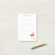 Red flamingo & calligraphy on white lined post-it notes
