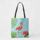 Red Flamingo, Hibiscus & Tropical Palm Leaves Tote