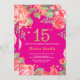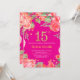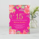 Red Floral 15th Birthday Gold Glitter and Hot Pink Invitation