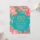 Red Floral 60th Birthday Invitation for Women. Watercolor Botanical Floral Flower. Gold Glitter. Teal Aqua Turquoise Background. Pink Peonies Floral Flowers. Adult Birthday. For further customisation, please click the "Customise it" button and use our design tool to modify this template.