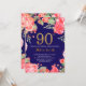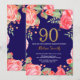 Red Floral 90th Birthday Invitation for Women. Watercolor Botanical Floral Flower. Gold Glitter. Navy Blue Background. Pink Peonies Floral Flowers. Adult Birthday. For further customisation, please click the "Customise it" button and use our design tool to modify this template.