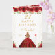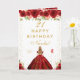 This elegant and glamorous birthday card can be personalized with a name or title such as daughter, granddaughter, niece, friend etc. The design features a beautiful princess with blonde hair and fair skin in a red ball gown. The text combines handwritten script and modern sans serif fonts for a classy and sophisticated look. The floral arrangements, butterflies and gold confetti create the perfect blend of rustic and chic.