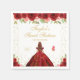 Red Floral Brown Hair Princess Sweet Sixteen Napkin