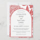 Beautiful red watercolor floral elegant background with gorgeous fonts with bride and groom names and all wedding venue for your invited guests. Perfect for any season wedding.
