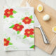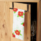 Stylish and modern white kitchen or bath hand towel with bright red art flowers.