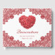 Elegant red floral quinceañera guest book featuring a red hydrangea heart and floral lace.