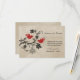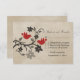 Sweet and whimsical Floral Lovebirds Wedding Response Card featuring a cascade of flowers on a swirly vine and a pair of dark red lovebirds with a vintage look textured digital art background in beige. This lovely wedding RSVP card is perfect for a spring or summer wedding. Easy to customise, simply add your wedding details. Click "Customise It" to find more personalisation options.