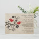 Sweet and whimsical Floral Lovebirds Wedding Invitation featuring a cascade of flowers on a swirly vine and a pair of dark red lovebirds with a vintage look textured digital art background in beige. This lovely wedding invitation is perfect for a spring or summer wedding. Easy to customise, simply add your wedding details. Click "Customise It" to find more personalisation options.