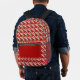 Under the mesh pocket on the right lower side, where you can keep a water bottle or something, there is a text field you can change to whatever text you want.