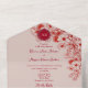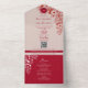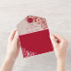 This unique red and blush all-in-one wedding invitation is designed to be eco-friendly, stylish, and budget-conscious. The envelope-style format includes everything in one piece — saving you money by eliminating the need for extra RSVP cards, menus, or additional enclosures.