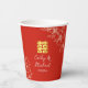 Red floral script Chinese wedding tea ceremony Paper Cups
