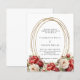 A white background decorated with red and white roses, florals. A faux gold oval frame. Personalise and add your names and details.