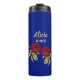 Red flower and leaves blue thermal tumbler