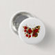 Red flower butterfly with red roses 3 cm round badge