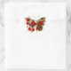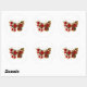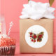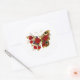 Red peacock eyed flower butterfly with red textured wing, decorated with composition of red, artistically painted roses with golden stems and leaves on white background.