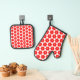 Floral oven mitt and pot holder. The oven mitt is designed to protect the wearer's hands and forearms from heat, typically when handling hot cookware or bakeware. It's a kitchen essential for anyone who bakes, cooks, or frequently uses an oven. The potholder is used to cover the hand when holding hot kitchen cooking equipment, like pots and pans. You can customise this oven mitt and potholder with any text of your choice. Should you require any help with customising then contact us through the message link on this page. Red flower design oven mitt and potholder
