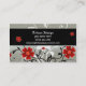 Red Flowers and Silhouette on Silver Business Card