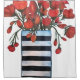 Red Flowers in Black and White Striped Vase Shower Curtain