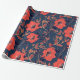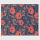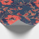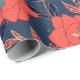 Red flowers of roses and peonies with leaves and p wrapping paper