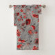 Red Flowers on Dark Grey, Red Poppies Floral Print Bath Towel Set
