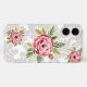 Red and pink flowers are scattered over a grey and white lacy looking background on this iPhone case. Beautiful, sweet, and feminine.