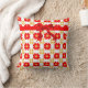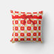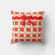 Red flowers and golden dots pattern with red ribbon on white Throw Pillow. Modern red and white decorative Throw Pillows.