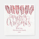Decorate your Christmas party this holiday season with these unique and modern Christmas paper napkins. The design features a festive red foil effect typography script "Merry Christmas" with matching hanging foliage on a clean white background. Easily add your custom wording to these holiday napkins by using the "Edit this design template" section, or click the "Customise it" button to access more advanced editing tools.